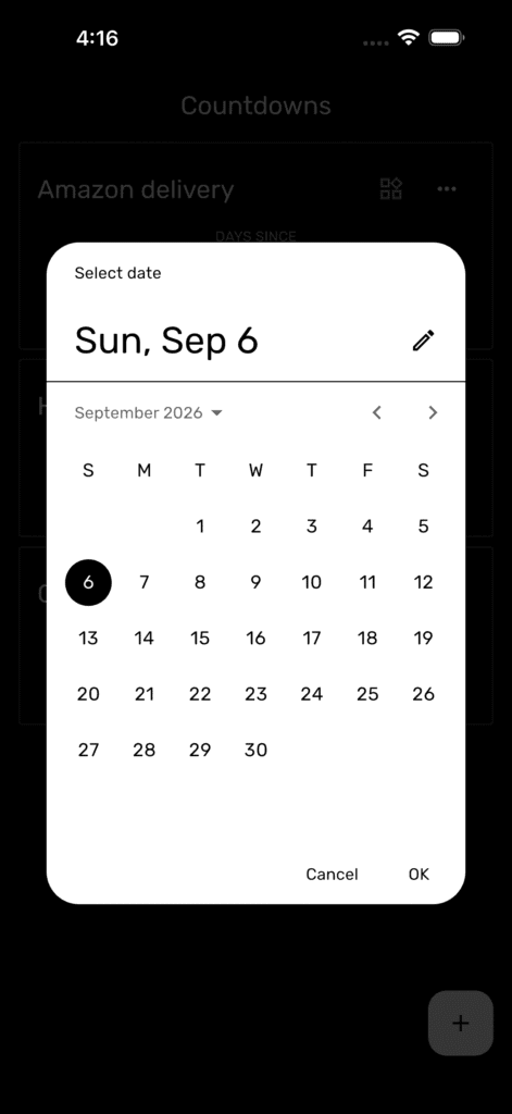 - Swipe to delete unwanted countdowns