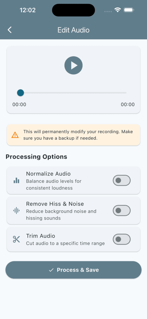 An application for recording audio with real time noise level monitoring and calendar based organization.