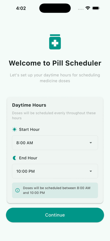 - Settings Screen: Configure daytime hours for dose scheduling